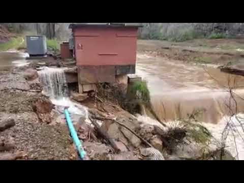 4.5 inches of rain recorded at City of Jasper water plant did damage throughout area. Shown here Long Swamp (Cove) Creek at City of Jasper water intake building. Isolated water outages in City.