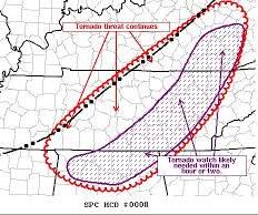 TORNADO WATCH 6 IS IN EFFECT UNTIL 1000 PM CST FOR THE FOLLOWING LOCATIONS AL . ALABAMA COUNTIES INCLUDED ARE BIBB BLOUNT CULLMAN DEKALB ETOWAH FAYETTE GREENE HALE JEFFERSON ...